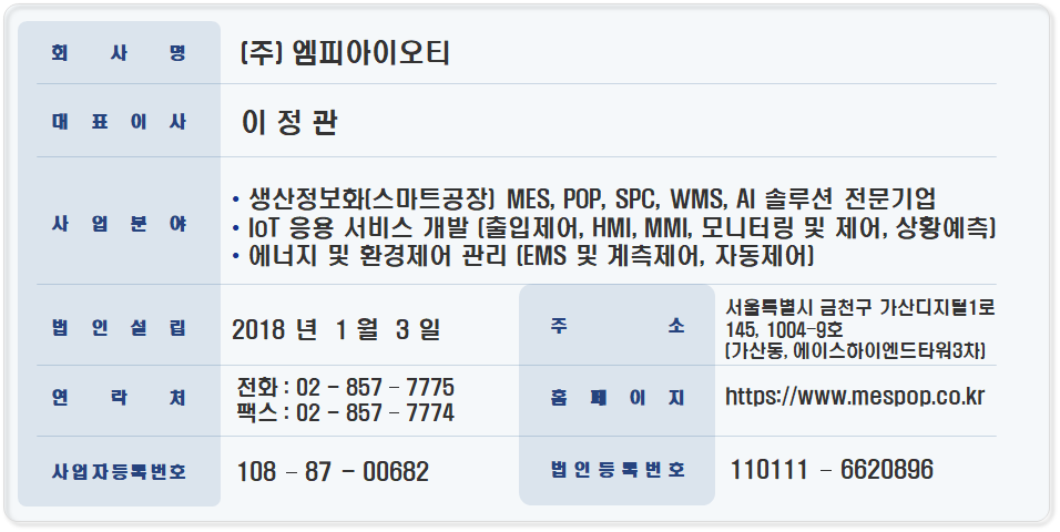 MES | POP | IOT 솔루션 전문 | (주)엠피아이오티